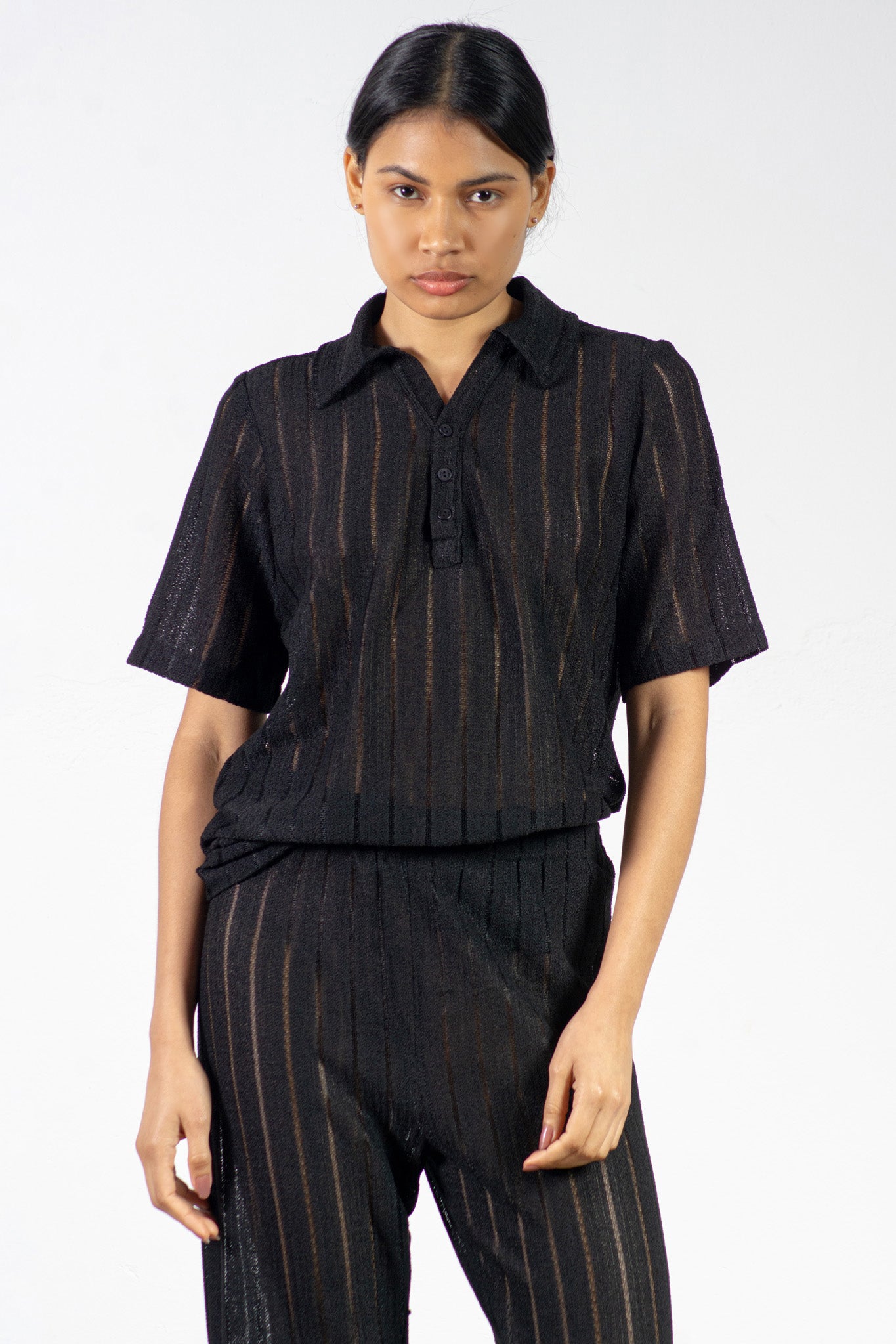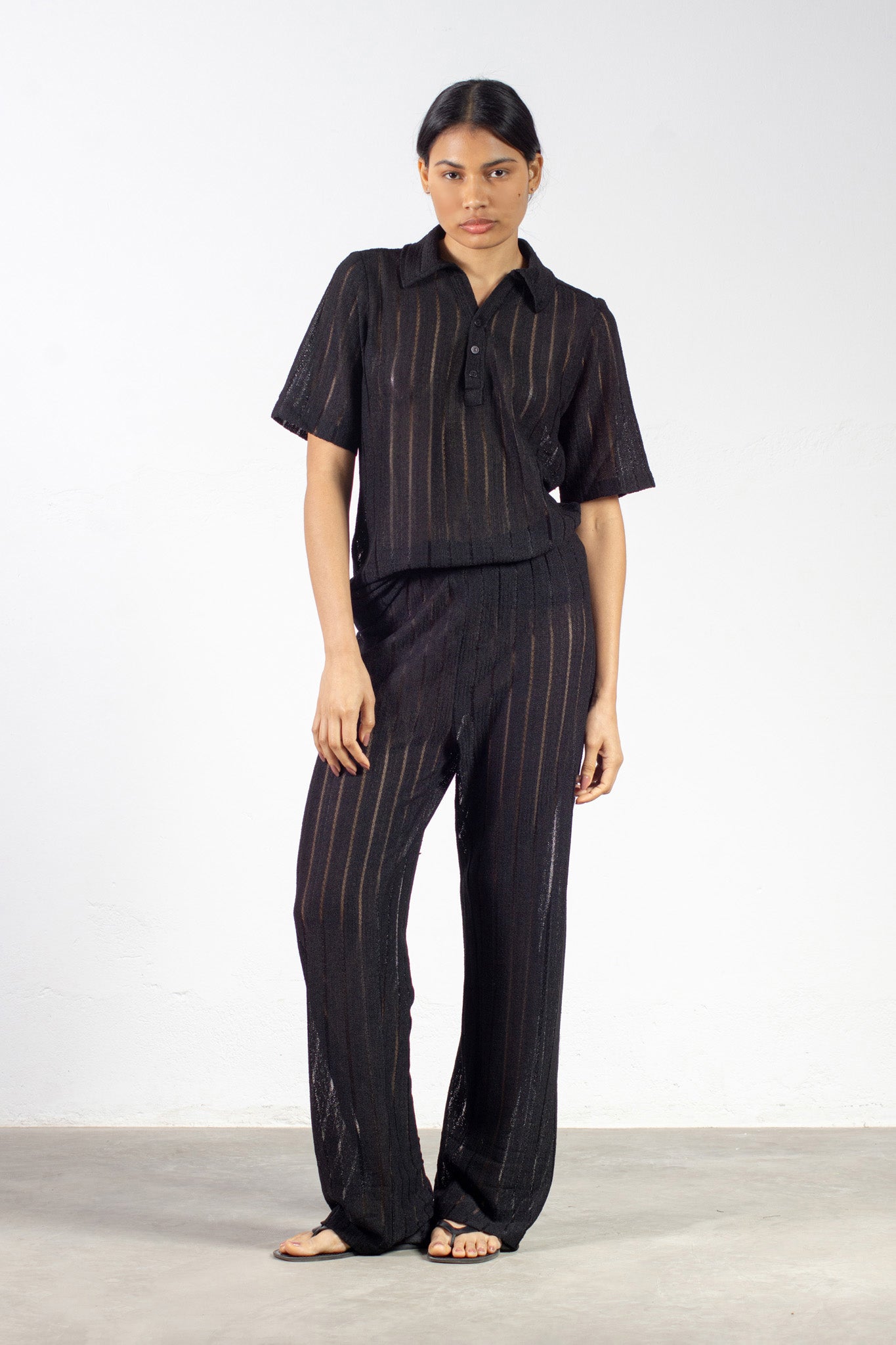 Descrição: A Blusa Polo Elise Tricô é perfeita para quem busca um look confortável. É um modelo super descolado e fácil de fazer combinações. Feito em malha tricô, possui leve transparência e é ideal para o verão. Além disso, é perfeita para viajar ou levar na mala pois o tecido não amassa e seca rápido!  Experimente combinar com a Calça Elise Tricô para fazer o conjunto.